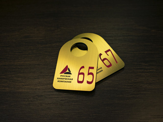 гардеробный пластиковый номерок золотого цвета